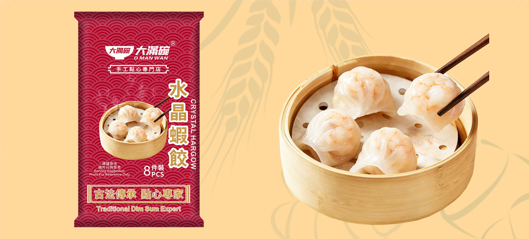 竹筍、蝦、水、馬鈴薯澱粉、豬肉、增稠劑(E1420、E415)、小麥澱粉、豬油、糖、增味劑(E621)、鹽、芝麻油、酸度調節劑(E451(i))、水分保持劑(E450(iii)、E452(i))、胡椒粉。