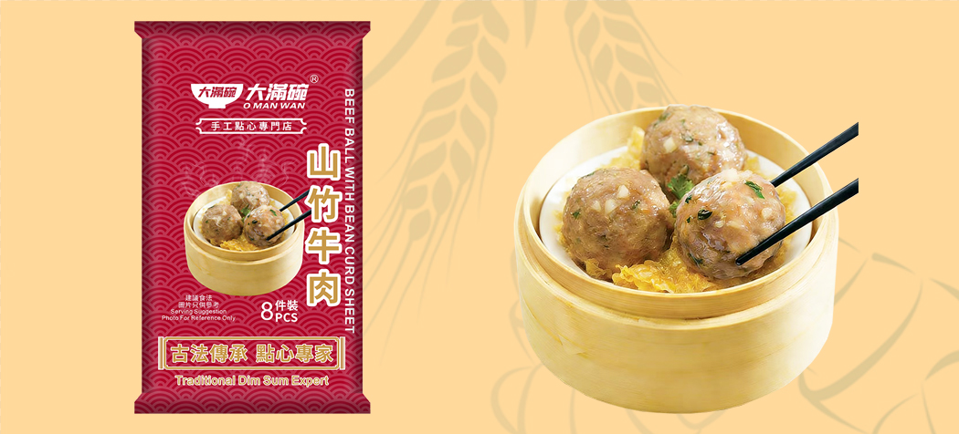 牛肉、雞肉、馬蹄、水、馬鈴薯澱粉、芫荽、糖、蔥、鹽、雞粉(鹽、麥芽糊精、增味劑(E621、E635、E364(ii))、糖、玉米澱粉、酵母提取物、雞油、雞粉、香料、調味料及調味劑(含有奶類)、抗結劑(E551)、色素(E150d))、草菇醬油(水、大豆、色素(E150c)、鹽、小麥粉、增味劑(E621)、草菇)、腐皮(大豆、水)、芝麻油、酸度調節劑(E500(ii)、E501(i)、E500(i))、陳皮、白胡椒粉。